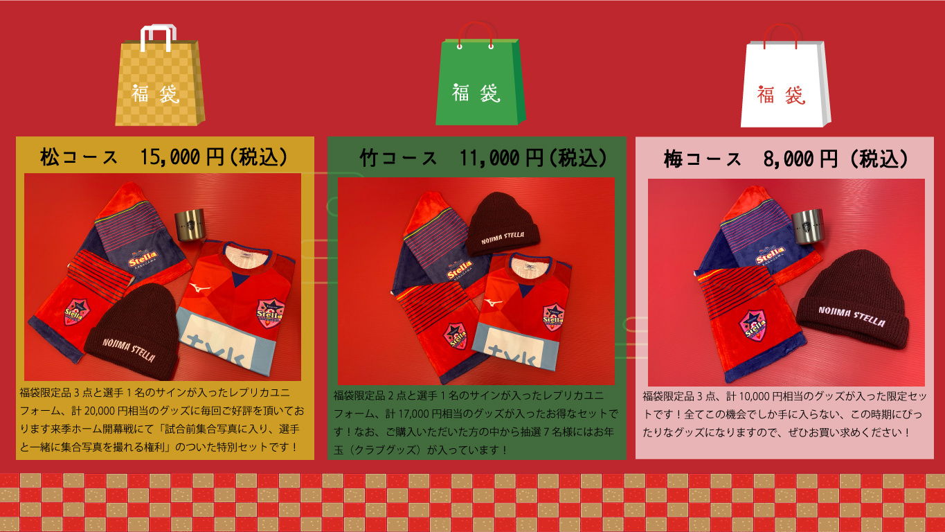 この寒い時期にぴったりな福袋限定グッズや、毎年ご好評を頂いておりますノジマステラのホームゲームでの体験型特典もございます。