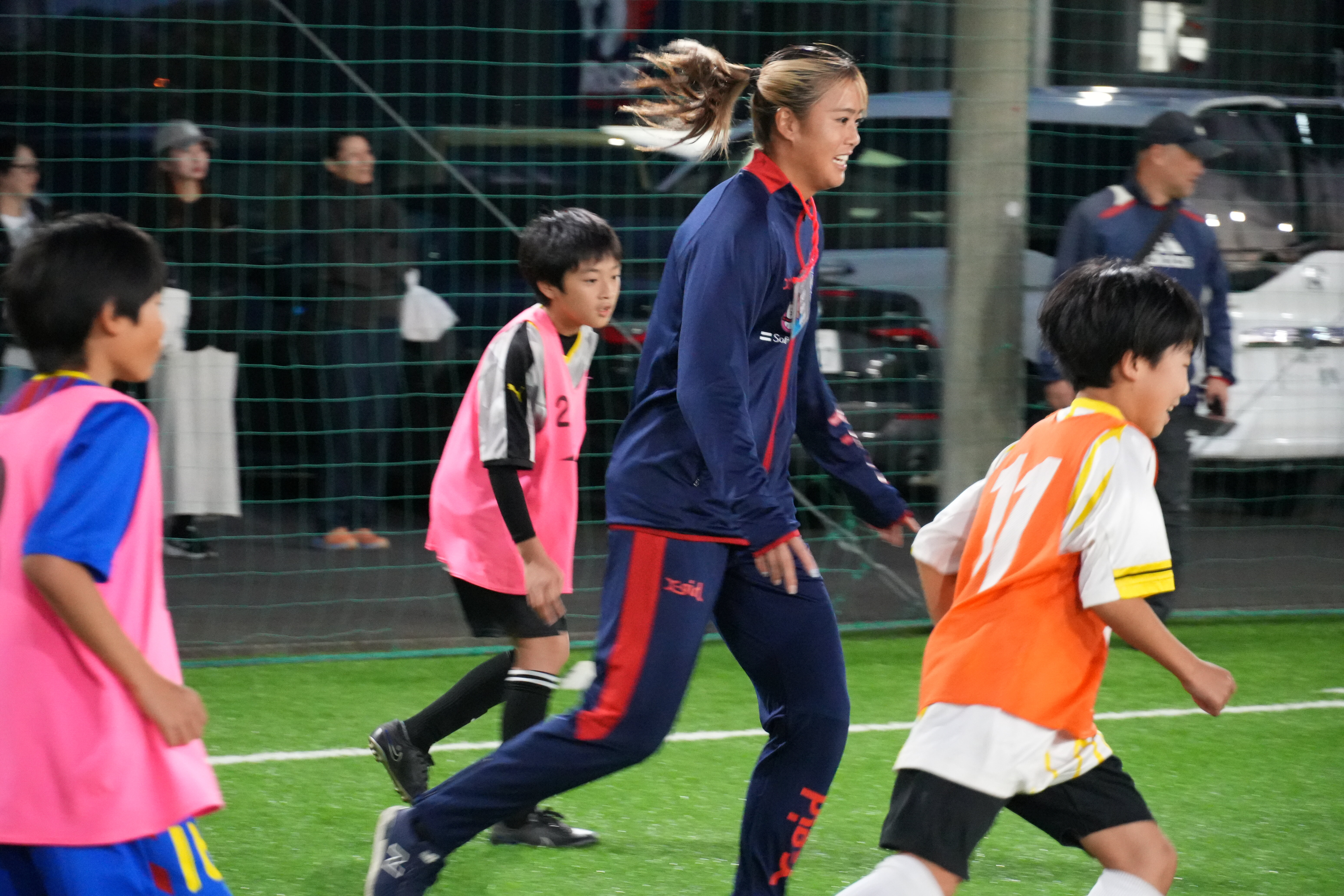 11月2日(日)、ノジマフットボールパークにて行われた「座間市・大仙市友好都市青少年交流会」にて小野奈菜選手、風間優華選手、加藤真実選手が参加し、サッカー教室を実施しました。