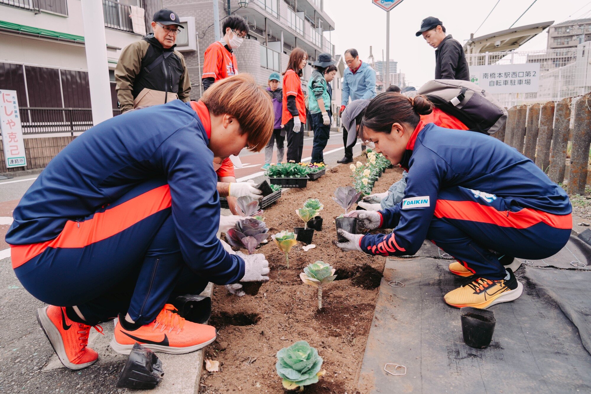 11月5日(水)に南橋本駅周辺で行われた「南橋本商栄会主催 植栽活動」に根府桃子選手、片山由菜選手が参加!!南橋本商栄会の皆さま、サポーターズクラブ会員有志の皆さまと共に、コミュニケーションを図りながら、地域を彩るべく植栽活動を行いました。