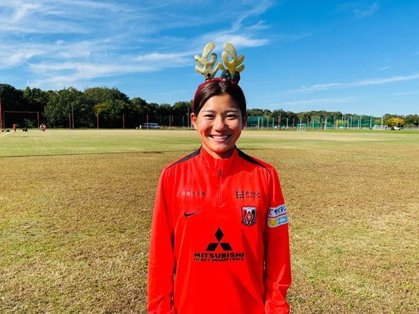 カメラに付けられる三菱重工浦和レッズレディース特製ストラップ
