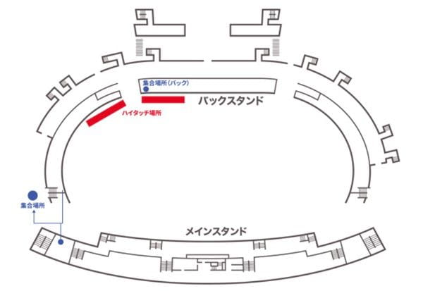 ※メイン側の参加者は、集まり次第、バックスタンド側に移動になります。運営スタッフの指示に従って移動ください。