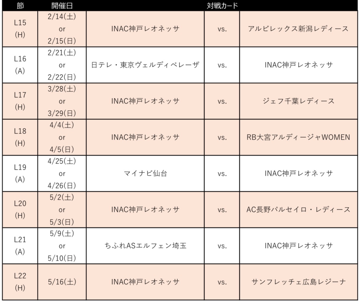 ◾︎2025/26 SOMPO WEリーグ 第15節~第22節