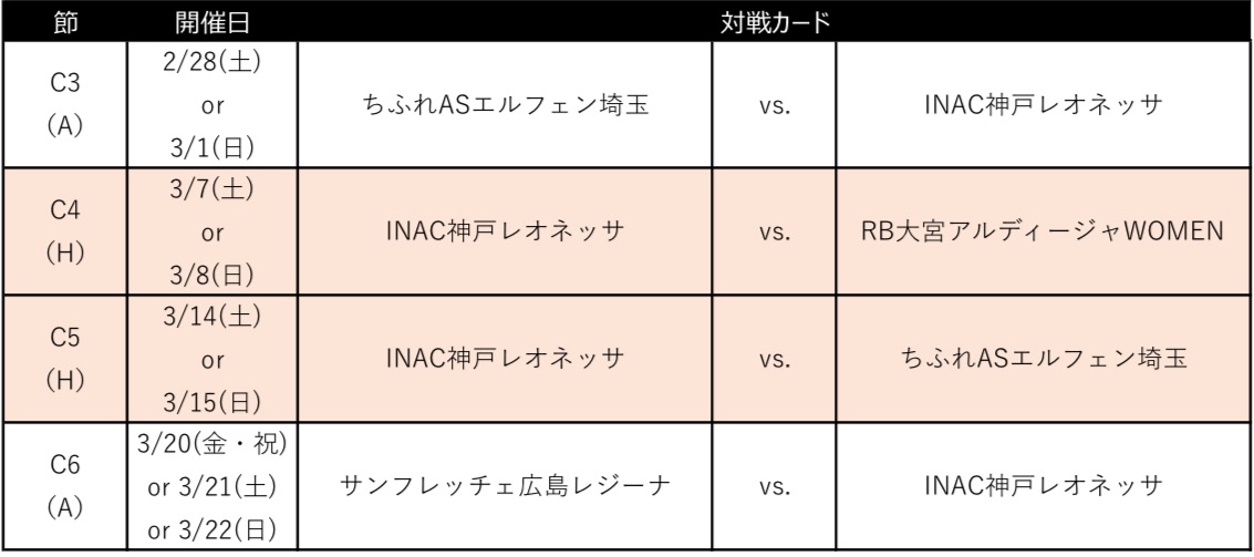 「2025/26 SOMPO WEリーグ 第15節~第22節」および「2025/26 WEリーグクラシエカップ グループステージ第3節~第6節」の対戦カードが決定しましたので、お知らせいたします。