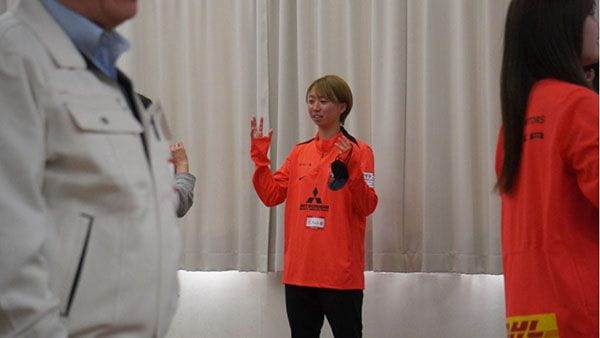 藤﨑選手、前原選手、熊澤選手は、中島建工のみなさんは、目が見えない状況での不便さを通じて、言葉で伝えることの難しさを学んだり、想像力を働かせて相手の状況に寄り添った対応をしたりすることの大切さを学び、チームの結束を高める方法の気付きを得ていました。