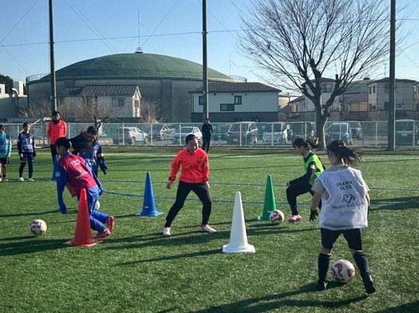 もう一つのイベントは、小学生女子サッカークリニック「さいたまシティサッカー夢プロジェクト」です。小学生年代を対象とした取り組みで、男子と一緒にプレーする機会が多い小学生年代の女子選手に対し、女子のみでプレーできる環境を提供することで、より技術力を高めやすい場を創出するとともに、中学生年代においても競技を続けたいと思える環境づくりを目的としています。