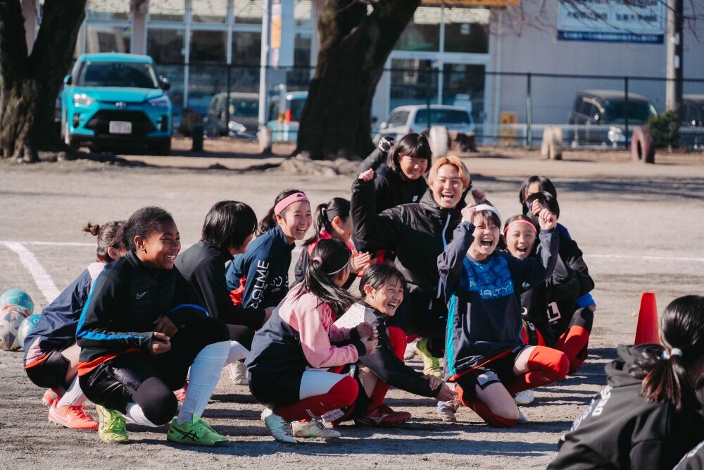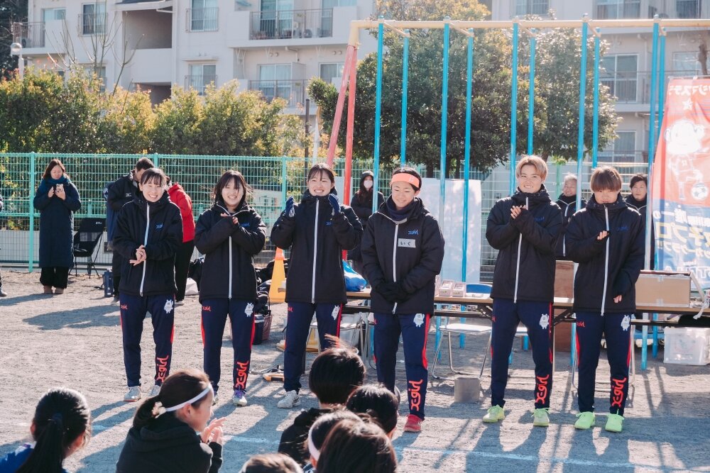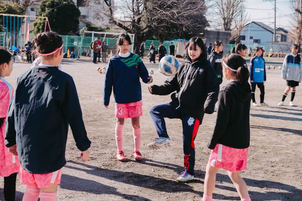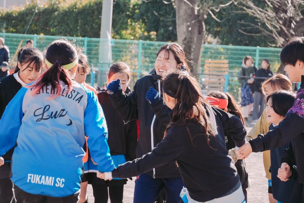 今年は大会前にトップチーム選手との交流会を開催!!南里杏選手、根府桃子選手、築地育選手、白井ひめ乃選手、三谷碧葉選手、明詩音梨選手が参加し、各チームに選手が加わる形で、目隠しウォークと円リフティングを通じて交流を深めました。交流会の最後には選手が子どもたちにエールを送り、大会がスタート。エールに応え、各チームが全力でサッカーを楽しんだ第4回大会の優勝は「大和リトルなでしこ」でした!おめでとうございます!!
