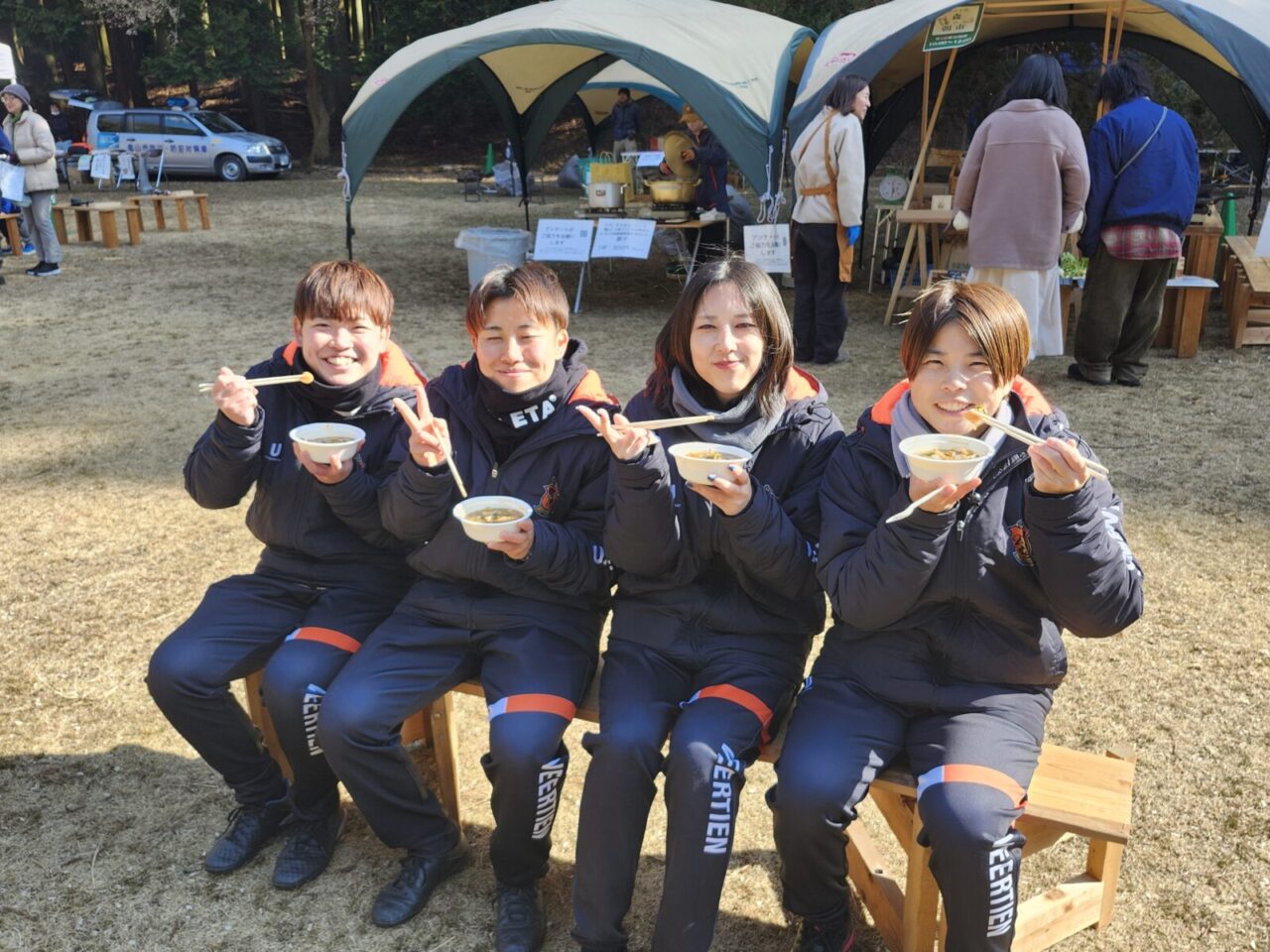 選手は参加していた子どもたちとサッカー対決したり、防災イベントに参加したり、キャンプが災害時に役に立つ事が分かりました❗選手たちは普段できないたくさんの体験をさせてもらいました。