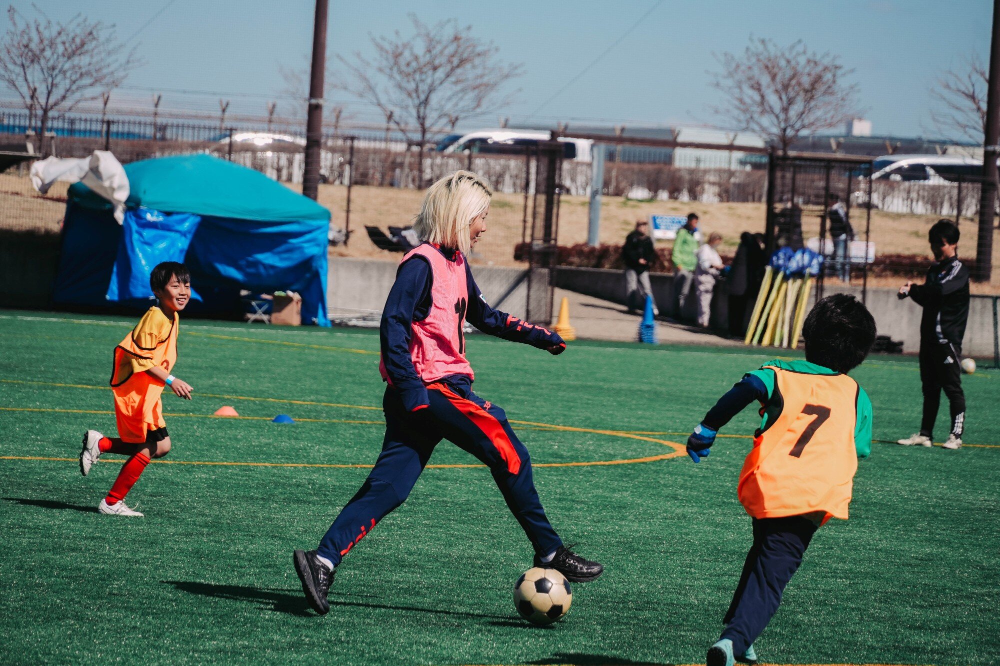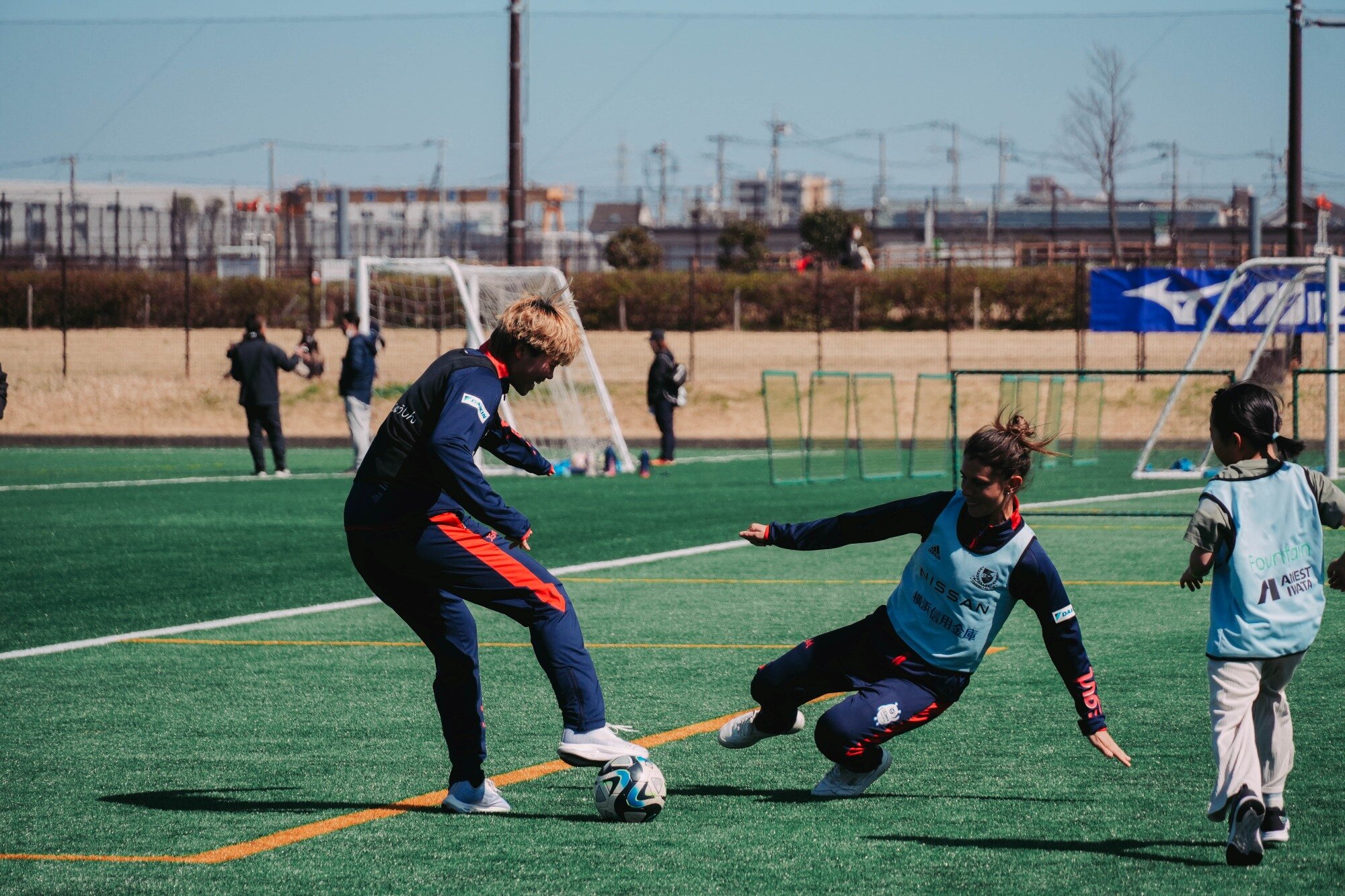 3月8日(日)綾瀬スポーツ公園&大和ゆとりの森で行われた「大和・綾瀬スポーツフェスティバル」に岩崎有波選手、伊東珠梨選手、大賀理紗子選手、パオラ・ソルデヴィラ選手、南里杏選手、明詩音梨選手、祐村ひかる選手が参加し、両市のホームタウンチーム(SC相模原、横浜F・マリノス、大和シルフィード、ノジマステラ神奈川相模原)と合同でサッカー教室を実施しました。