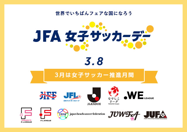日本サッカー協会(JFA)は 3月8日の国際女性デーに合わせ、3月8日を「JFA女子サッカーデー」と定めています。