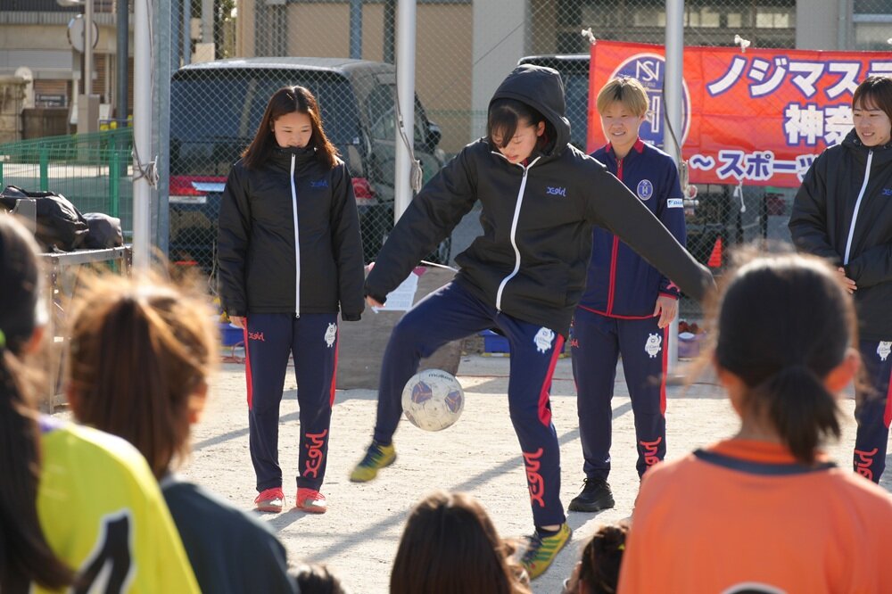 3月14日(土)、綾瀬市立綾瀬小学校にて行われた「綾瀬JADEカップ2026 U-12大会」に、小野 奈菜選手、長嶋 洸選手、笹井 優愛選手、加藤 真実選手が参加。大会に参加した約70名の子どもたちと、ミニゲームで交流を深めました。その後、選手たちは表彰式のプレゼンターを務めました。