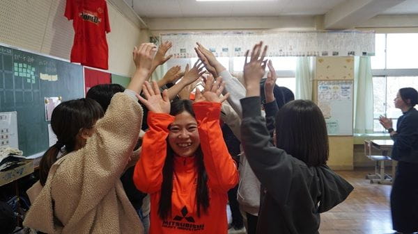全校児童とのふれあいを通じ、選手たちも終始笑顔で過ごすことができた今回の訪問。