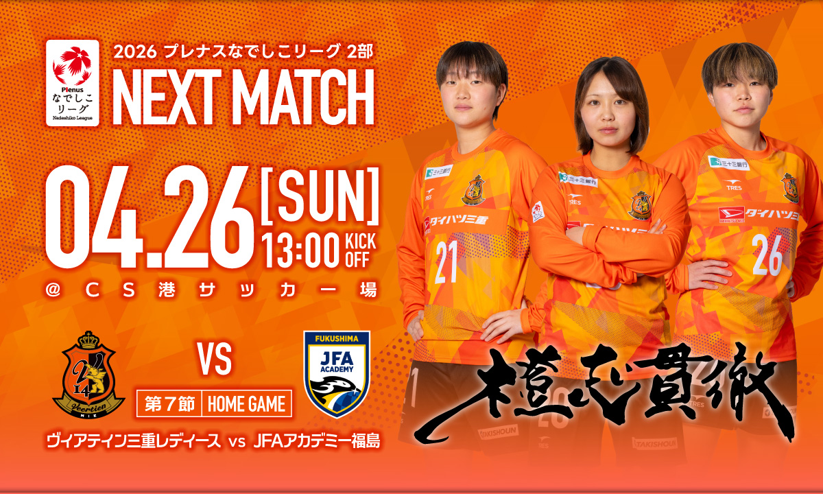 4月26日(日)に開催するホームゲーム「2026プレナスなでしこリーグ2部 第7節」