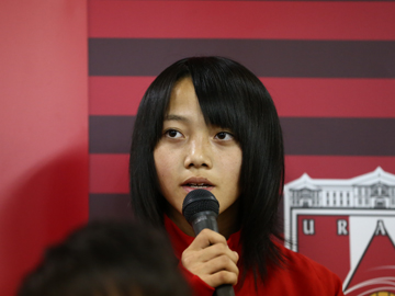 「レディースユースから昇格しました、GKの松本真未子です。私も中学1年生のときに、レッズレディースジュニアユースに加入して、一番の夢であったレッズレディースに昇格できることを、とてもうれしく思います。GKは池田選手も平尾選手もすごく能力が高く、激しい争いになると思いますが、そこに加われるように、努力を重ねていきたいと思います」