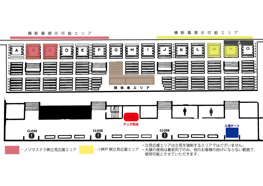 ・座席の一部は、立見応援エリアとさせて頂きます。立見応援エリアは立見を強制するものではございません。