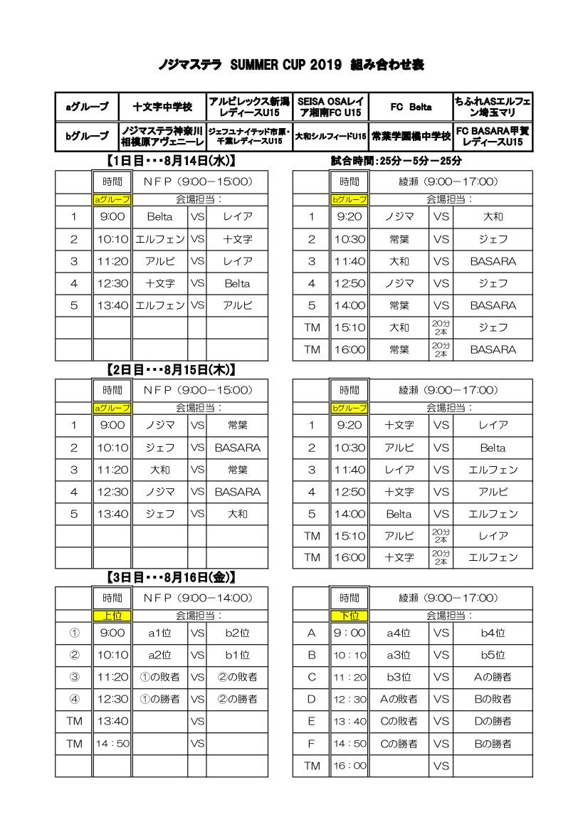 ノジマステラSUMMER CUP 2019 開催のお知らせ