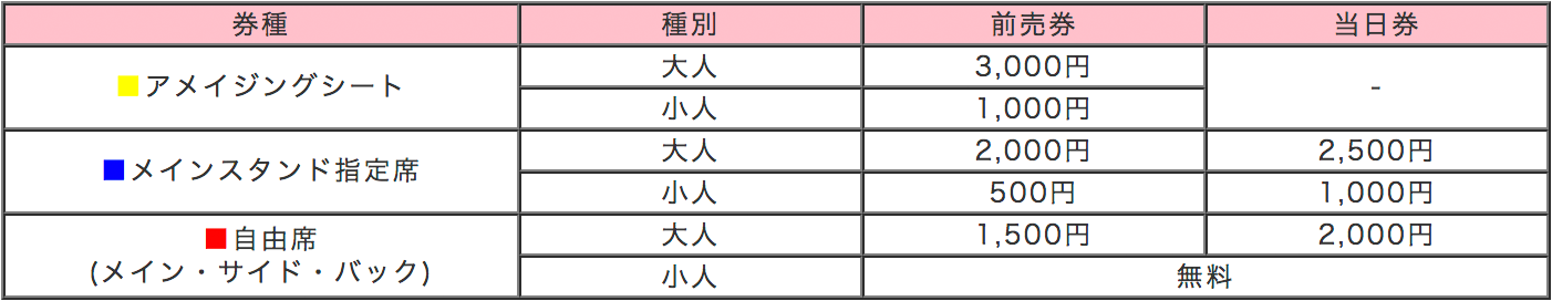 ※メインスタンド指定席は座席指定ではなくブロック指定となります。