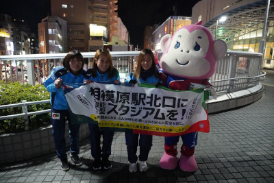 本日、相模原駅にて多機能複合型スタジアム整備を要望する署名運動をホームタウン4チーム合同で実施致しました。
