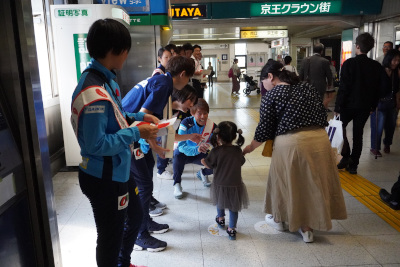 本日、橋本駅において開催されました赤い羽根共同募金の街頭募金活動に、トップチーム選手・スタッフが参加致しました。